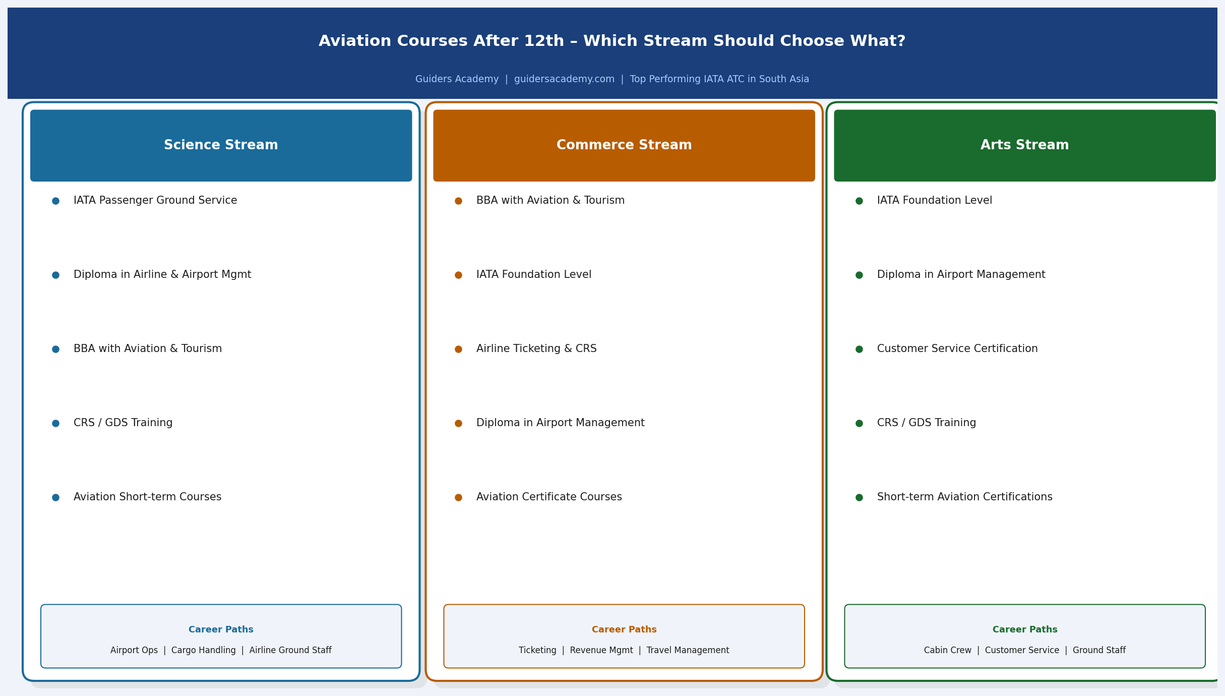Aviation courses after 12th open a fast track to one of India's most dynamic and globally connected industries. Kerala students today have access to accredited, industry-recognised programs that can place them in airports and airlines within months of completion. The key is to choose a program aligned to your stream, budget, and career goal, and to train at an institute with a proven placement record. For a broader look at all available programs, explore the complete aviation courses in Kerala guide on the Guiders Academy blog. If you are ready to take the first step toward an aviation career, contact our counsellors today and explore the right program for your future.