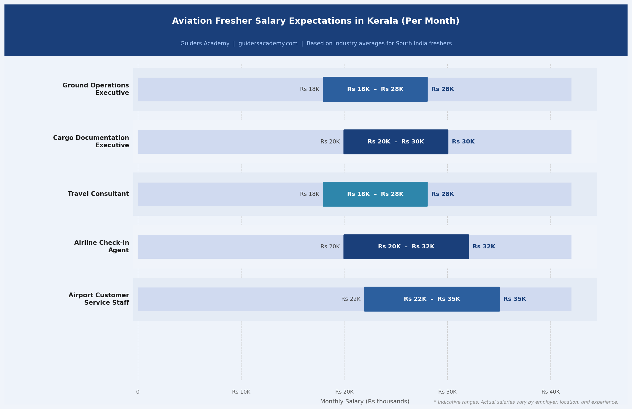 · Fresher aviation professionals in Kerala can expect monthly salaries between Rs 18,000 and Rs 45,000 depending on the role.