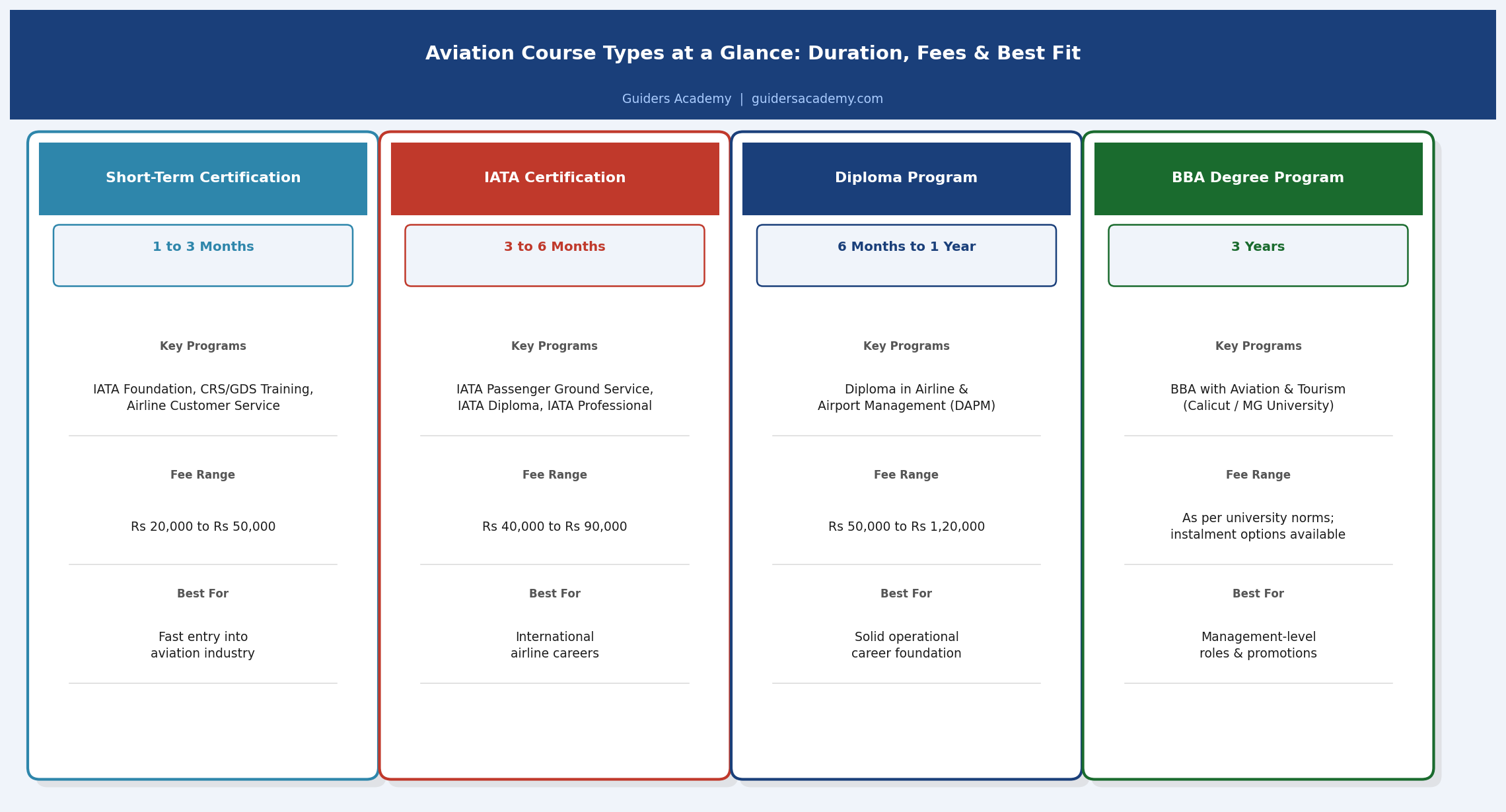 Aviation course types, duration and fee comparison – Guiders Academy Kerala